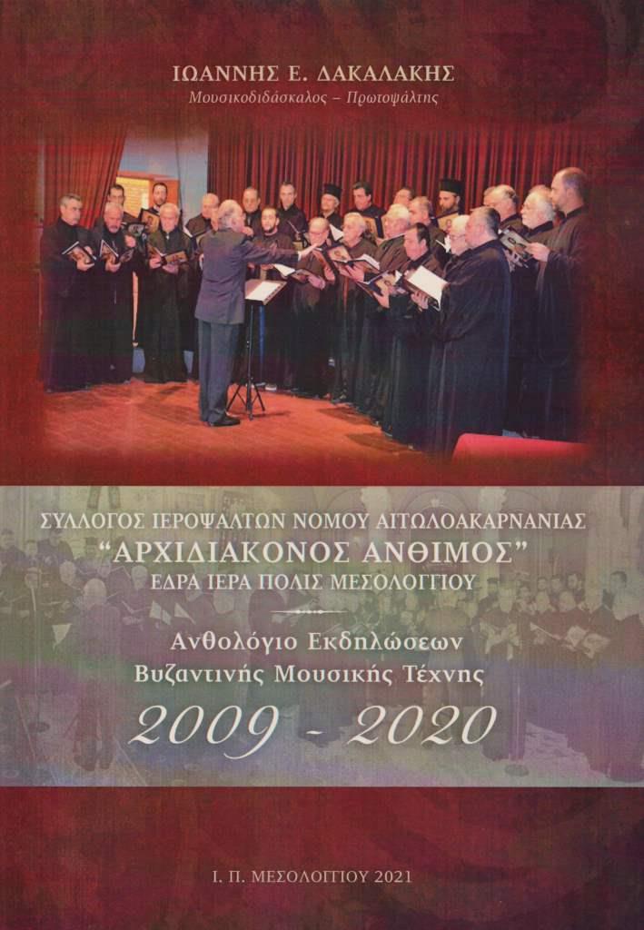 Κυκλοφόρησε, πριν λίγες ημέρες, το νέο βιβλίο του Μουσικοδιδασκάλου και Πρωτοψάλτου, Γιάννη Δακαλάκη με τίτλο «Ανθολόγιο Εκδηλώσεων Βυζαντινής Μουσικής Τέχνης τού Συλλόγου Ιεροψαλτών Ν. Αιτωλοακαρνανίας «ΑΡΧΙΔΙΑΚΟΝΟΣ ΑΝΘΙΜΟΣ», με έδρα το Μεσολόγγι».