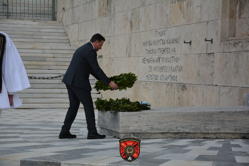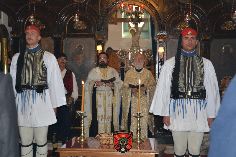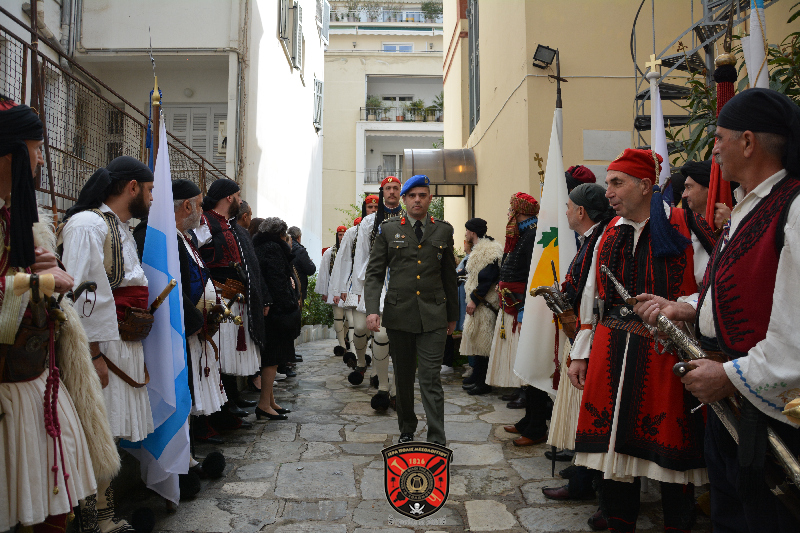 Ο ενθουσιασμός και η συγκίνηση ήταν πρωτόγνωρη για όλους τους συμμετέχοντες, αφού η υποδοχή και η θερμή φιλοξενία των Ευζώνων δεν εκδηλώθηκε απλά με τον στρατιωτικό χαιρετισμό τους καθώς περνούσε η Μπάντα και οι Σημαίες του Αγήματος αλλά κορυφώθηκε με τελετή στην οποία, εκ μέρους της διοίκησης της Προεδρικής Φρουράς, ο Ταγματάρχης Νικόλαος Βαβλέκης καλωσόρισε τον Ιερό Λόχο και τους συλλόγους που συμμετείχαν, επιδίδοντας ένα μοναδικό αναμνηστικό δώρο, εξάρτημα της ενδυμασίας των Ευζώνων. Ο επίτιμος Πρόεδρος του Συλλόγου μας κ. Γιώργος Σούρλας ανταπέδωσε, επιδίδοντας πλακέτα με το ιστορικό Έμβλημα των Ιερολοχιτών. Στη συνέχεια η Μπάντα μας, μέσα στο Στρατόπεδο παιάνισε την Μπαντονάδα, το ιστορικό εμβατήριο των Ελεύθερων Πολιορκημένων, και η παρέλαση συνεχίστηκε μέχρι το μνημείο του Άγνωστου Στρατιώτη όπου κατατέθηκαν στεφάνια κι ανακρούστηκε ο Εθνικός Ύμνος.