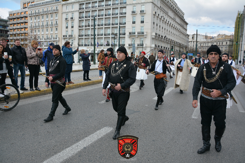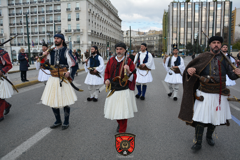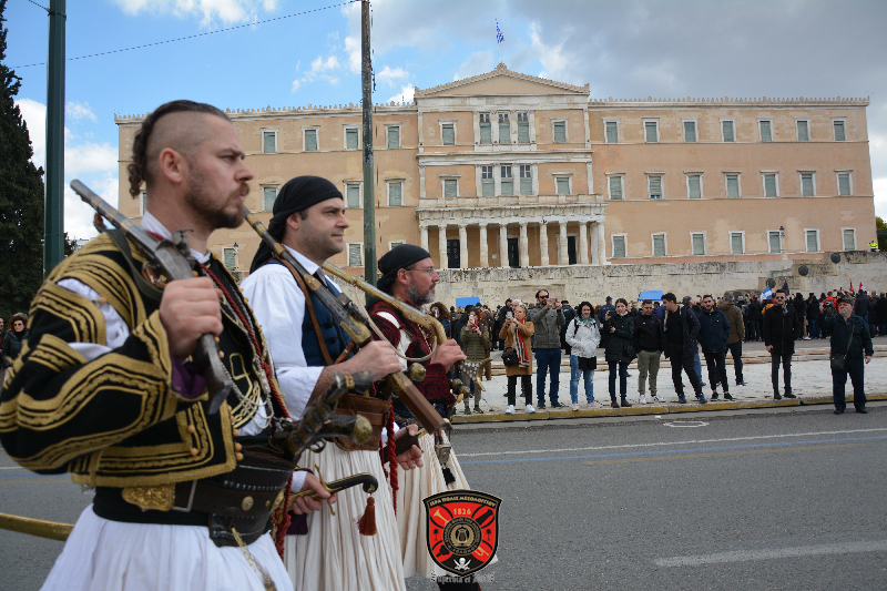 Η μεγαλειώδης παρέλαση στην καρδιά της Αθήνας ήταν ίσως το πιο εντυπωσιακό γεγονός των εκδηλώσεων για την 199η επέτειο της Κήρυξης της Επανάστασης απ’ τον Αλέξανδρο Υψηλάντη, αλλά δεν ήταν το μόνο. Το τεράστιο Άγημα αρματωμένων, ίσως το μεγαλύτερο ενιαίο άγημα αναβιωτών μέχρι σήμερα, παρέλασε με την Μπάντα του Ιερού Λόχου διανύοντας την οδό Ηρώδου του Αττικού, διήλθε εμπρός από το Προεδρικό Μέγαρο και το Μέγαρο Μαξίμου και εισήλθε παιανίζοντας στο στρατόπεδο της Προεδρικής Φρουράς. Εξ όσων γνωρίζουμε, για πρώτη φορά στην ιστορία της η Προεδρική Φρουρά υποδέχτηκε στους χώρους της Άγημα και Μπάντα πολιτών.