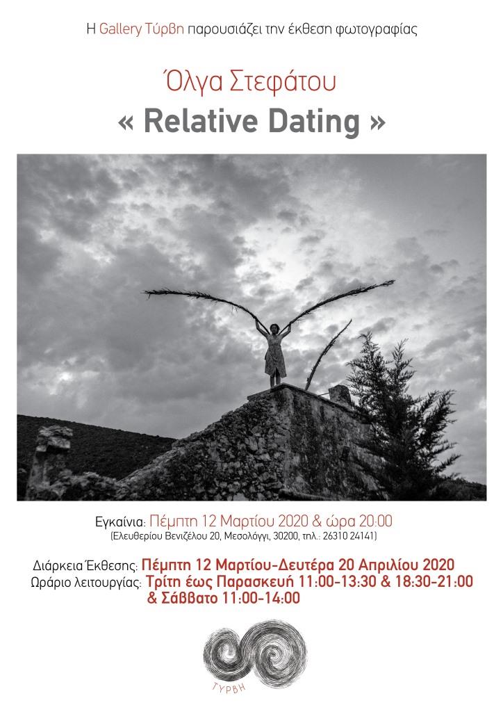 Η γκαλερί Τύρβη (Βενιζέλου 20, Μεσολόγγι) σας καλεί στα εγκαίνια της έκθεσης φωτογραφίας της Όλγας Στεφάτου, "Relative Dating" την Πέμπτη 12 Μαρτίου 2020 και ώρα 20:00