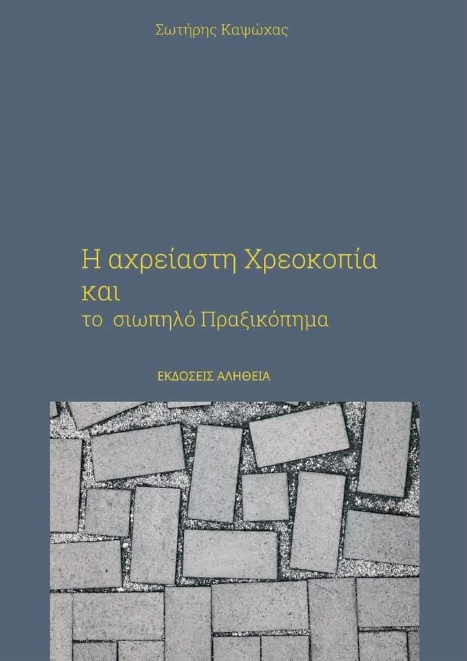 Οφείλω να ομολογήσω ότι να κληθείς να σχολιάσεις και να προσεγγίσεις το βιβλίο του Σωτήρη Καψώχα «Η αχρείαστη χρεοκοπία και το σιωπηλό πραξικόπημα» που πρόσφατα εκδόθηκε, είναι ταυτόχρονα μία πρόκληση και μία πρόσκληση. Μία πρόκληση για συζήτηση, αξιολόγηση και αποτίμηση όλων όσων με τόση γλαφυρότητα και δημοσιογραφική ενάργεια περιγράφει, αλλά και μια πρόσκληση να αναδεικνύονται σε δημόσιους χώρους, φωνές, κραυγές και ψίθυροι που έλκουν την καταγωγή τους από την περιοχή μας, που μέχρι σήμερα τουλάχιστον, δεν γνωρίζω για ποιο λόγο, δεν βρήκαν πρόσφορο έδαφος να ακουστούν. Με την έννοια αυτή, οφείλω να συγχαρώ τους διοργανωτές της σημερινής παρουσίασης.