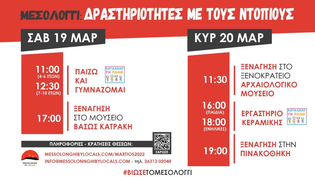 Ένα ξεχωριστό Σαββατοκύριακο μας περιμένει στις 19-20 Μαρτίου αφού το ΜΕΣΟΛΟΓΓΙ ΤΩΝ ΝΤΟΠΙΩΝ_MESSOLONGHI BY LOCALS προγραμμάτισε ψυχαγωγικές δραστηριότητες για όλες τις ηλικίες.