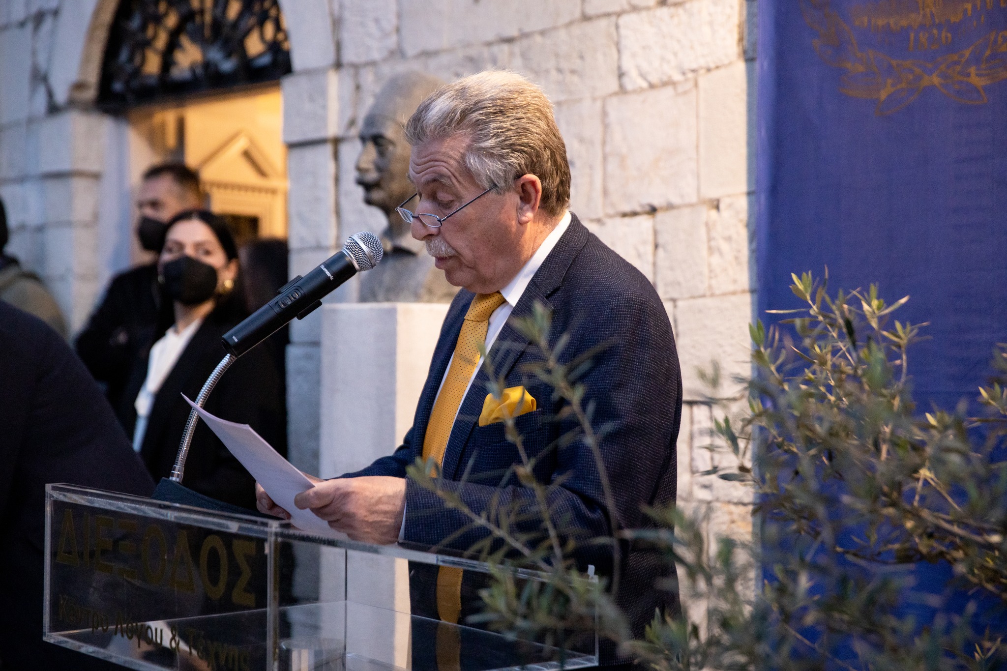 Στη συνέχεια, και αφού ο φωτογράφος Νίκος Σιάμος ευχαρίστησε για την διοργάνωση της έκθεσής του, στο βήμα ανέβηκε ο δήμαρχος Κώστας Λύρος, ο οποίος χαρακτήρισε τη λάμψη της θυσίας των Μεσολογγιτών ως παντοτινό παράδειγμα για τους αδικημένους όλου του κόσμου και κήρυξε την έναρξη των εορταστικών εκδηλώσεων για την 196η επέτειο της Εξόδου κόβοντας, μαζί με τον μητροπολίτη Ιερόθεο, την κορδέλα των εγκαινίων.
