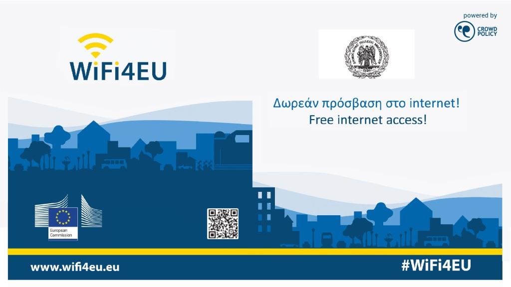 Το WiFi4EU είναι ένα Ευρωπαϊκό πρόγραμμα, το οποίο εξασφαλίζει δωρεάν συνδεσιμότητα Wi-Fi για όλους τους πολίτες και τους επισκέπτες σε δημόσιους χώρους, όπως πάρκα, πλατείες, δημόσια κτίρια, βιβλιοθήκες, κέντρα υγείας και μουσεία, παντού στην Ευρώπη.