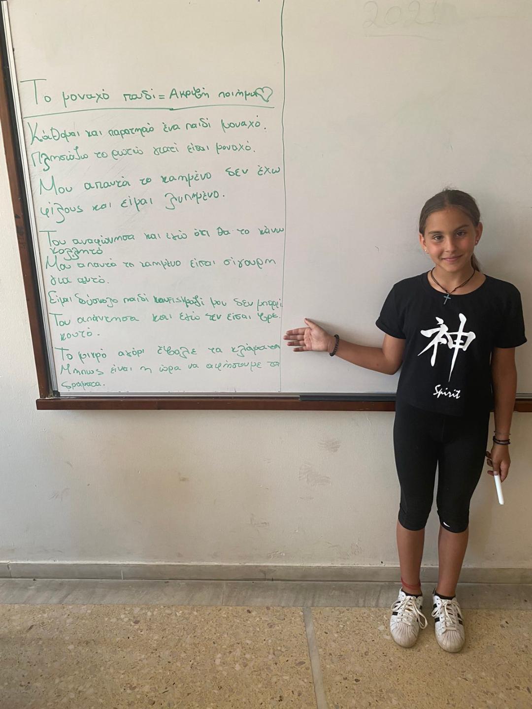 Η μαθήτρια της ΣΤ΄ Δημοτικού, Νικολάου Ακριβή, διακρίθηκε με το ποίημά της «Το μοναχό παιδί» και της απονεμήθηκε ο 3ος Έπαινος! Να σημειώσουμε ότι για φέτος ήταν η μοναδική μαθήτρια δημοτικού που βραβεύτηκε.