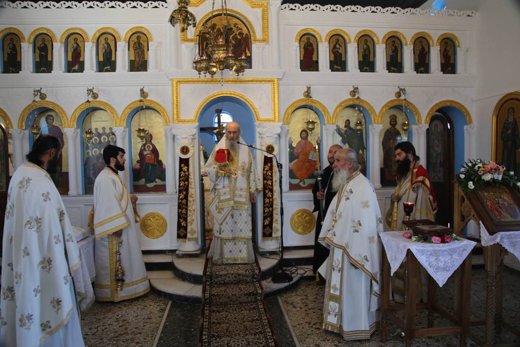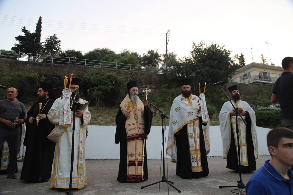 Μετά τον Εσπερινό ακολούθησε η λιτάνευση της ιεράς Εικόνας, του ιερού Ευαγγελίου και των ιερών Λειψάνων στους δρόμους του χωριού. Στην κεντρική πλατεία τελέσθηκε δέηση και ο Σεβασμιώτατος μίλησε στο πλήθος των πιστών Χριστιανών.