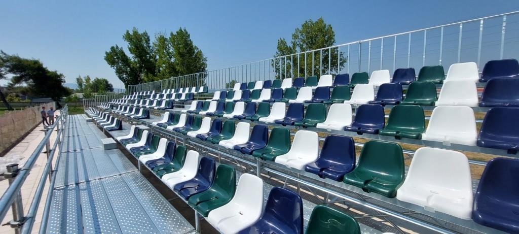 Ταυτόχρονα έγινε η τοποθέτηση του απαραίτητου εξοπλισμού πάγκων και η κατασκευή της μεταλλικής κερκίδας που επιτρέπει την άνετη παρακολούθηση των εκδηλώσεων.