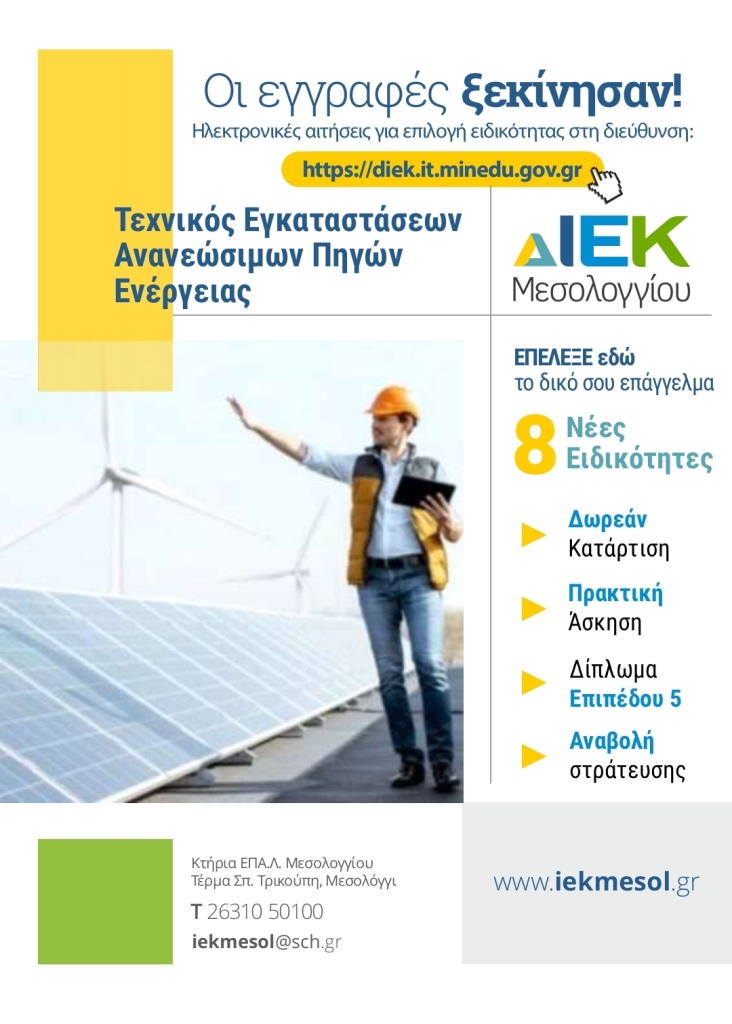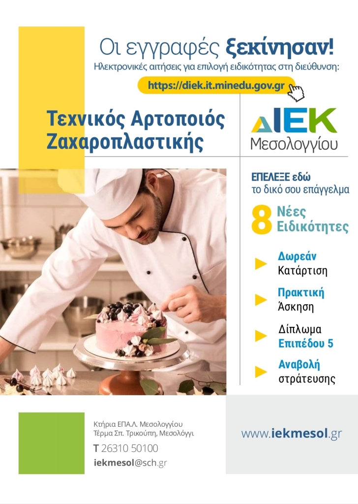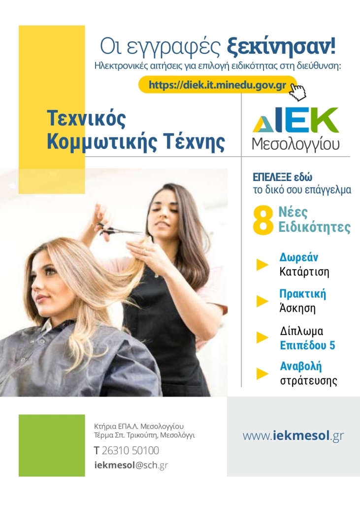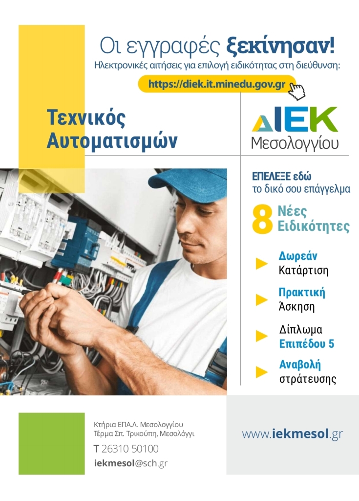 ΔΙΕΚ Μεσολογγίου: Ξεκινά η διαδικασία εγγραφών στα ΔΙΕΚ του ΥΠΑΙΘ
