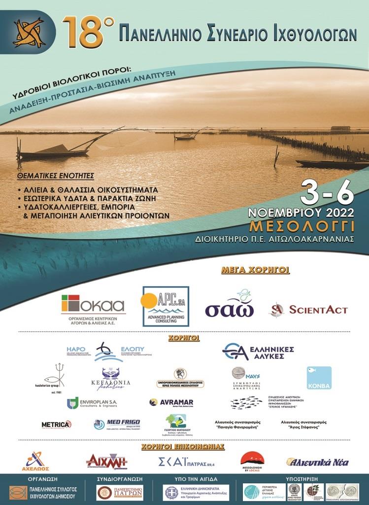 Το 18ο Πανελλήνιο Συνέδριο Ιχθυολόγων 3-6 Νοεμβρίου 2022 στο Μεσολόγγι με θέμα: