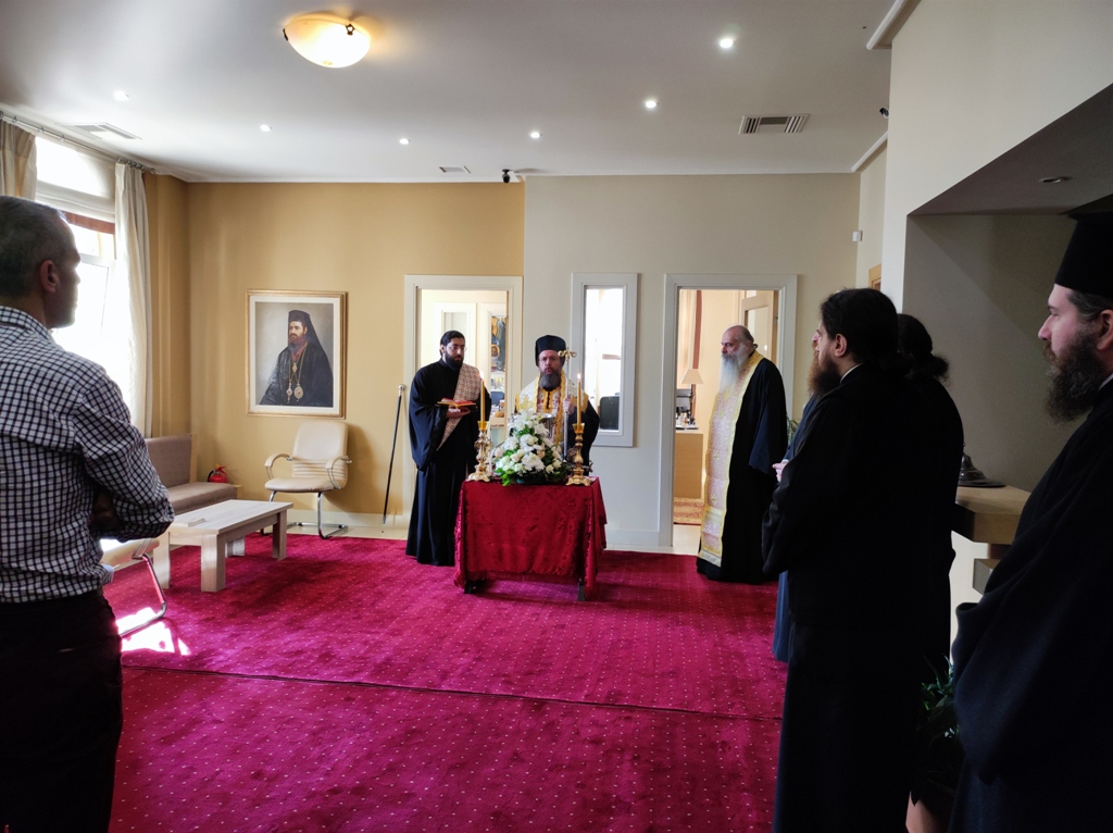 Τον Σεβασμιώτατο υποδέχθηκαν θερμά ο Πρωτοσύγκελλος και οι κληρικοί και λαϊκοί υπάλληλοι των Γραφείων, οι οποίοι του ευχήθηκαν καλή ποιμαντορία.