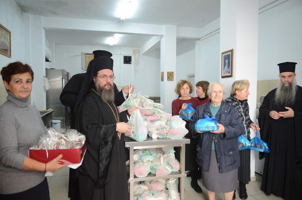 Έπειτα ευλόγησε το εορταστικό Γεύμα Αγάπης που παρέθεσε ο Δήμος Ιεράς Πόλεως Μεσολογγίου στα μέλη του ΚΑΠΗ και σε μοναχικά άτομα και ευχήθηκε πάντοτε, αλλά ιδιαίτερα αυτές τις ημέρες να προσφέρουμε αγάπη και χαρά στους συνανθρώπους μας, προσπαθώντας να κάνουμε ένα διάλειμμα από την καθημερινότητα.