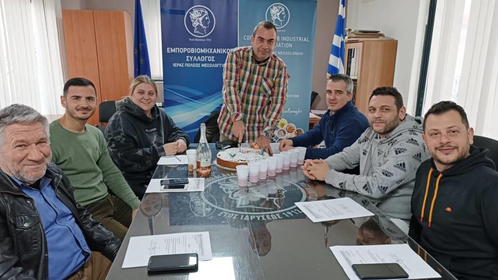 Η διοίκηση του Εμποροβιομηχανικού Συλλόγου Μεσολογγίου πραγματοποίησε την κοπή Πρωτοχρονιάτικης πίτας στα γραφεία του Συλλόγου την Πέμπτη, 5 Ιανουαρίου, αμέσως μετά την ολοκλήρωση της συνεδρίασης του Διοικητικού Συμβουλίου για τον προγραμματισμό Τακτικής Γενικής Συνέλευσης.