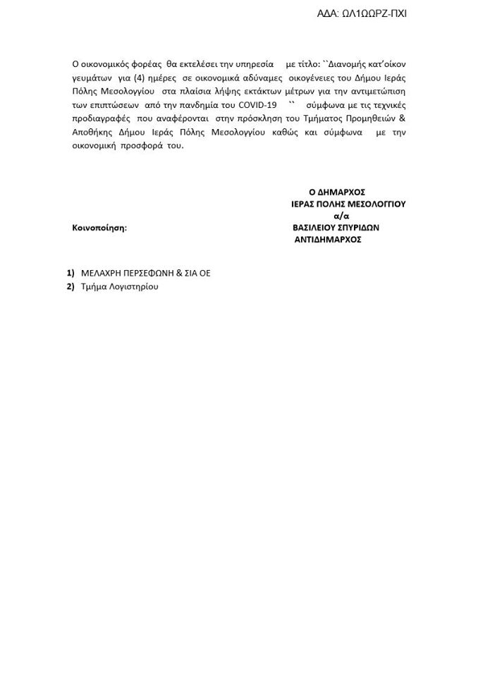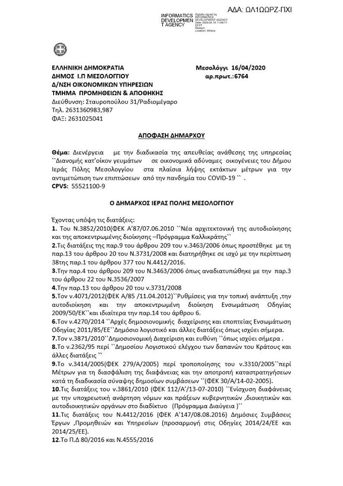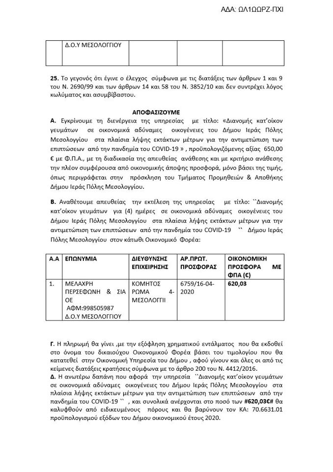 «Μπράβο στον Δήμο μας που φρόντισε σήμερα 16/04 /2020 να αναθέσει  απευθείας μερίδες φαγητού για τους  ανήμπορους του Δήμου μας λόγω covid19  αξιοσημείωτο βέβαια ο επαγγελματίας  που πήρε την απευθείας ανάθεση!!