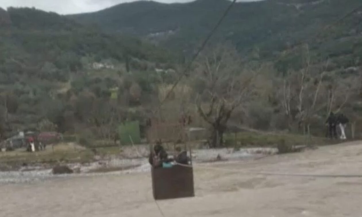 Στο Θέρμο της Αιτωλοακαρνανίας μαθητές αναγκάστηκαν να διασχίσουν μια αυτοσχέδια συρμάτινη γέφυρα, θέτοντας σε κίνδυνο τη ζωή τους, προκειμένου να επιστρέψουν στα σπίτια τους από το σχολείο.