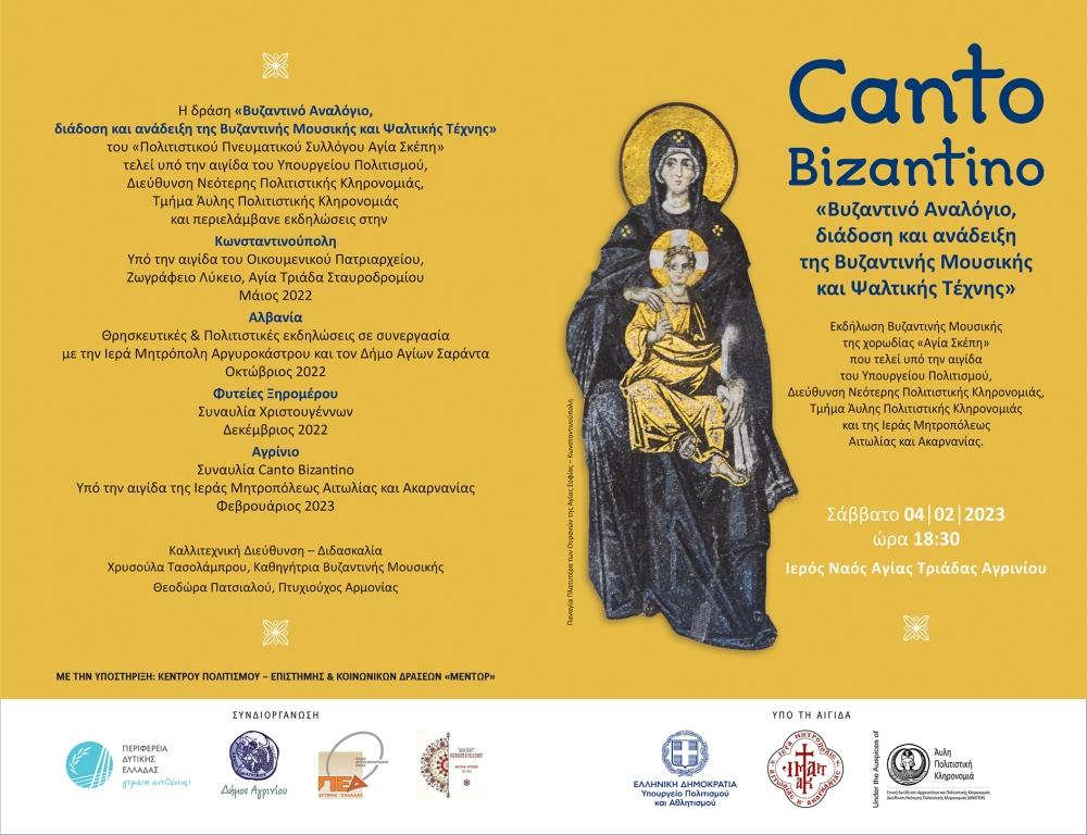 Το Σάββατο 4 Φεβρουαρίου η χορωδία «Αγία Σκέπη» θα παρουσιάσει την εκδήλωση Canto Bizantino της δράσης «Βυζαντινό Αναλόγιο: Διάδοση και ανάδειξη της Βυζαντινής Μουσικής και Ψαλτικής Τέχνης».