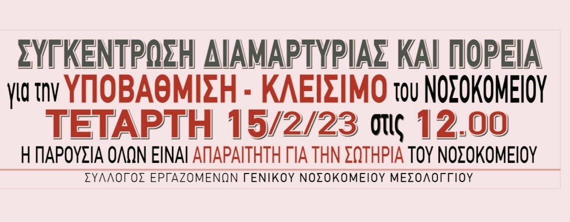 Ας στηρίξουμε μαζικά την εκδήλωση, ας στείλουμε μήνυμα προς κάθε κατεύθυνση ότι δεν θα ανεχθούμε το κλείσιμο του νοσοκομείου μας.