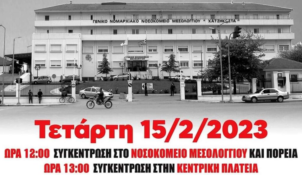 (Ώρα 12:00: Συγκέντρωση στο νοσοκομείο Μεσολογγίου και πορεία, ώρα 13:00: