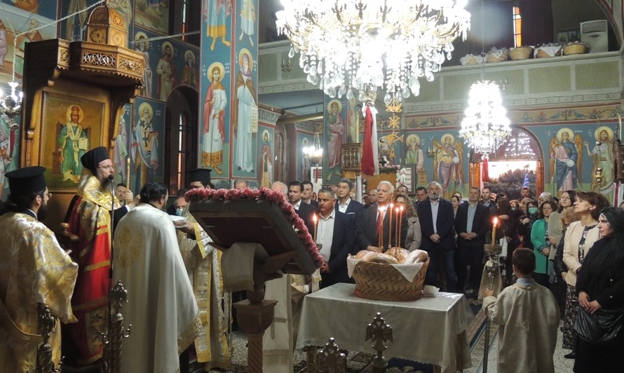 Μιλώντας για τον Άγιο Μεγαλομάρτυρα Γεώργιο, που έζησε τον 3ο αιώνα, τόνισε, ότι είναι ο κατεξοχήν αναστάσιμος Άγιος. Είναι εκείνος που στηρίχθηκε στην Ανάσταση του Χριστού και βίωσε τον δικό του μαρτυρικό θάνατο ως το πέρασμα του από την γη στον ουρανό, από τα πρόσκαιρα και τα εφήμερα στα αιώνια, από την επίγεια πατρίδα στην επουράνια και στην αιωνιότητα της βασιλείας των ουρανών.