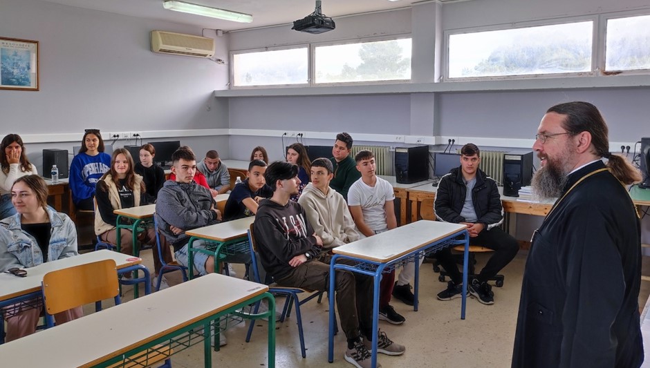 Ο Σεβασμιώτατος εξέφρασε την χαρά του και ευχαρίστησε για την πρόσκληση να βρεθεί στη σχολική αίθουσα και να απαντήσει σε οποιαδήποτε ερώτηση επιθυμούν να του θέσουν οι μαθητές. Για περισσότερο από μιάμιση ώρα συνομίλησε μαζί τους, απάντησε στις ερωτήσεις τους και η συζήτηση επεκτάθηκε και σε πολλά άλλα θεολογικά, εκκλησιαστικά, κοινωνικά και νεανικά θέματα.