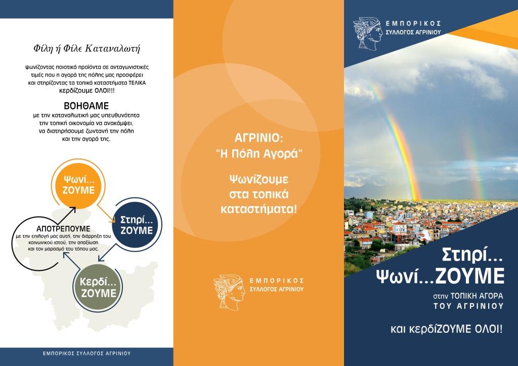 Ο Εμπορικός Σύλλογος Αγρινίου με την παρακάτω προωθητική καμπάνια στήριξης των τοπικών καταστημάτων του Δήμου τους ζητά από όλους τους κατοίκους να σταθούν στο πλευρό των συμπολιτών και να ενισχύσουν παράλληλα την οικονομίας της πόλης τους.