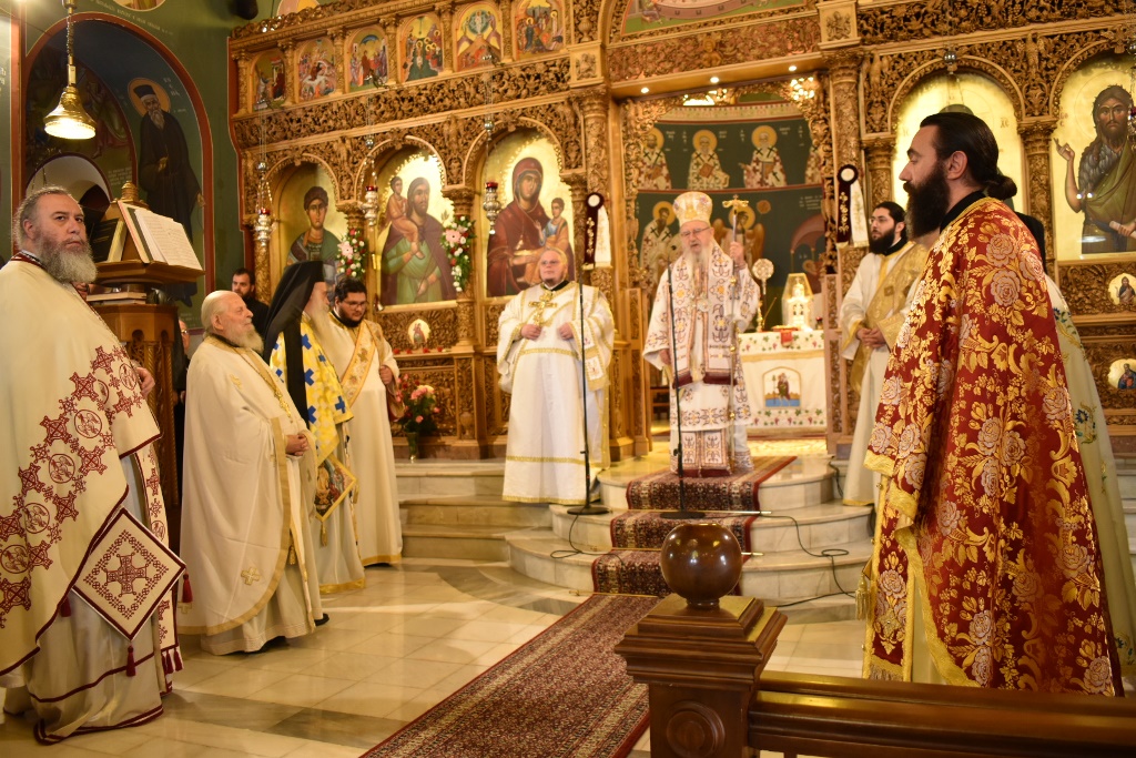Η Θεία Λειτουργία τελέσθηκε και στον παλαιό Ιερό Ναό, ενώ το απόγευμα θα τελεσθεί μόνο η ακολουθία του Εσπερινού, αφού η γνωστή και καθιερωμένη λαμπρή και πάνδημος Λιτανεία του Αγρινίου εφέτος δεν θα πραγματοποιηθεί.