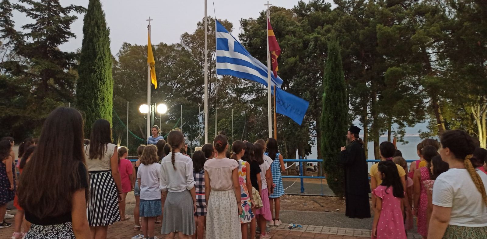 Στην συνέχεια ευλόγησε το δείπνο και μοίρασε σε όλες σταυρουδάκια και ευλογίες που έφερε από τα Ιεροσόλυμα και ευχήθηκε να περάσουν μια καλή, όμορφη και εποικοδομητική κατασκηνωτική περίοδο.