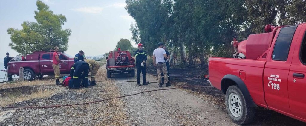 Η φωτιά πήρε διαστάσεις σύμφωνα με τις πρώτες πληροφορίες έχει κάψει μια πελάδα. Στο σημείο επιχείρησε δύναμη της Πυροσβεστικής Μεσολογγίου, ενώ ο δυνατός αέρας δυσχέραινε την προσπάθεια κατάσβεσης.