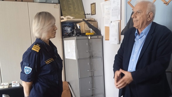 Εκεί είχε την ευκαιρία να ενημερωθεί από την Λιμενάρχη Μεσολογγίου, Υποπλοίαρχο Λ.Σ. Σκανδάλου Κυριακή, και να διαπιστώσει ιδίοις όμμασι την τραγική κατάσταση που επικρατεί στους χώρους του Λιμεναρχείου. Άθλιες οι συνθήκες εργασίας των στελεχών του Λιμενικού Σώματος, του πολύ νευραλγικού αυτού τομέα μιας περιοχής με τεράστια ακτογραμμή.