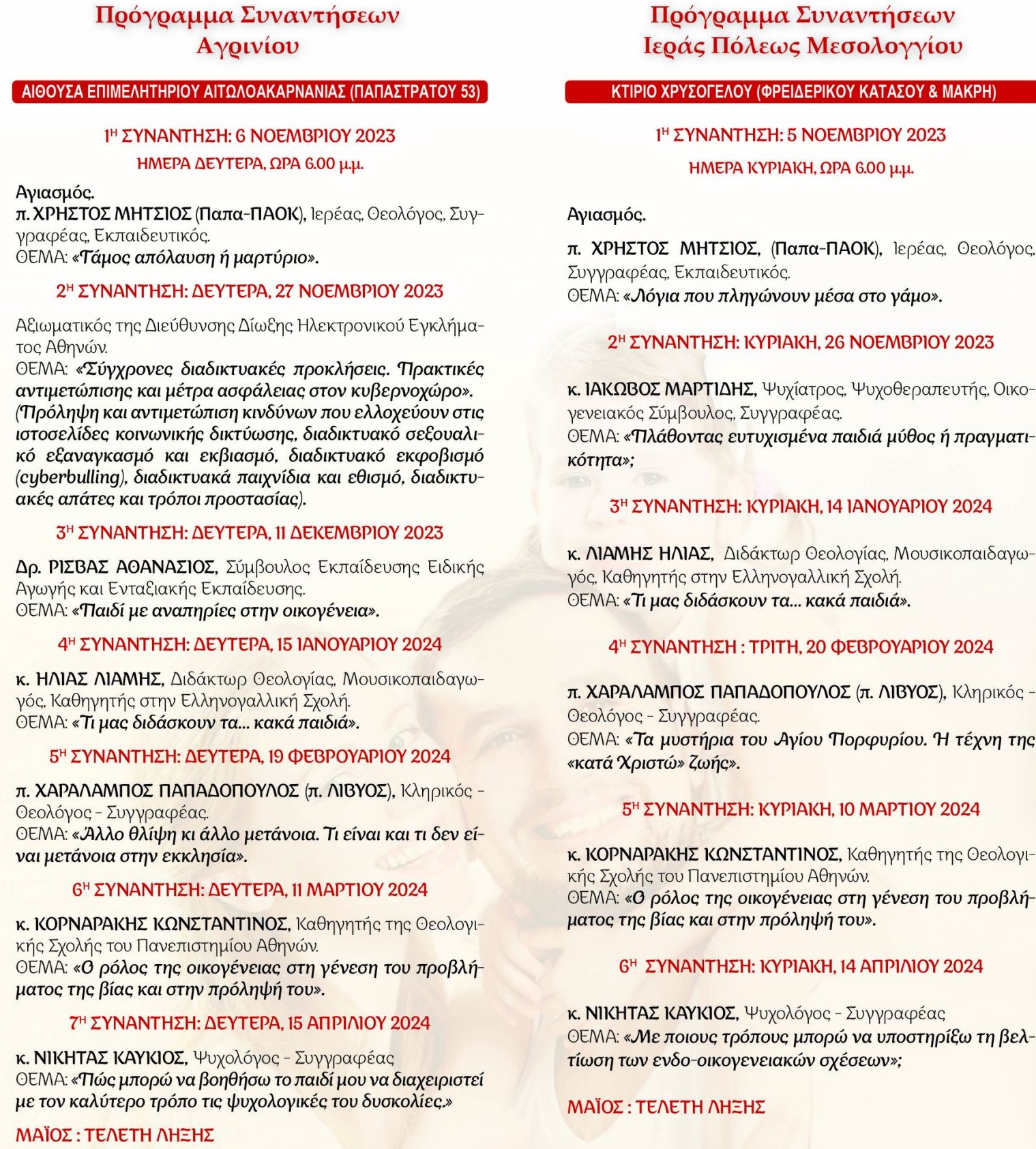ΠΡΟΓΡΑΜΜΑ ΣΥΝΑΝΤΗΣΕΩΝ ΑΓΡΙΝΙΟΥ
