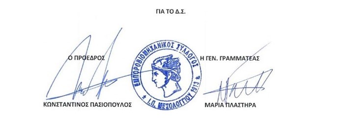 Η διοίκηση του Εμποροβιομηχανικού Συλλόγου εκφράζει τα ειλικρινή του συγχαρητήρια για την πρόσφατη εκλογή σας στο αξίωμα του Δημάρχου Ι.Π. Μεσολογγίου.