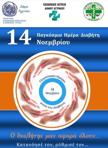 Το Κοινωνικό Ιατρείο και το Κοινωνικό Φαρμακείο της Διεύθυνση Κοινωνικής Προστασίας και Δημόσιας Υγείας του Δήμου Αγρινίου, την Τρίτη 14 Νοεμβρίου 2023 πραγματοποιεί συμβολική φωταγώγηση με γαλάζιο χρώμα του κτιρίου του Δημοτικού Συμβουλίου (πρώην Τράπεζας Ελλάδος) και δωρεάν μέτρηση σακχάρου από τις 9:00 έως τις 12:00 για όλους τους πολίτες μας στον πεζόδρομο της Χαρίλαου Τρικούπη (είσοδος Δημαρχείου).