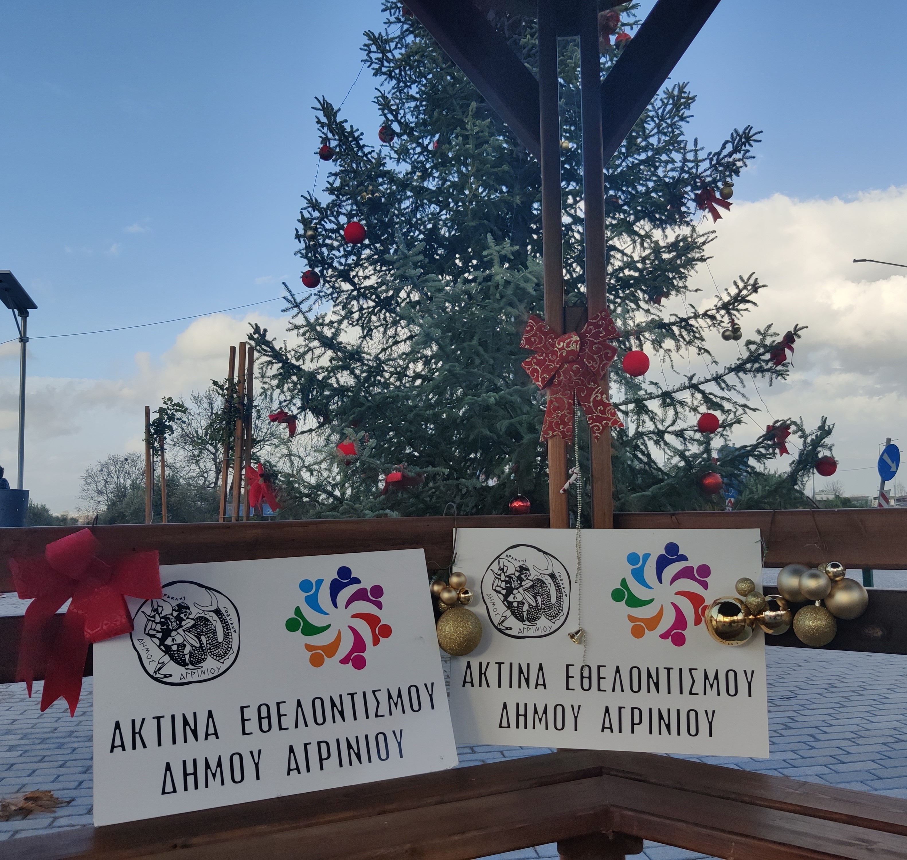 Στο πλαίσιο των εορταστικών δράσεων εθελοντές και μέλη της Ακτίνας Εθελοντισμού του Δήμου Αγρινίου στόλισαν το χριστουγεννιάτικο δένδρο που βρίσκεται στην είσοδο της Μακρυνείας, στη θέση Συκιά.