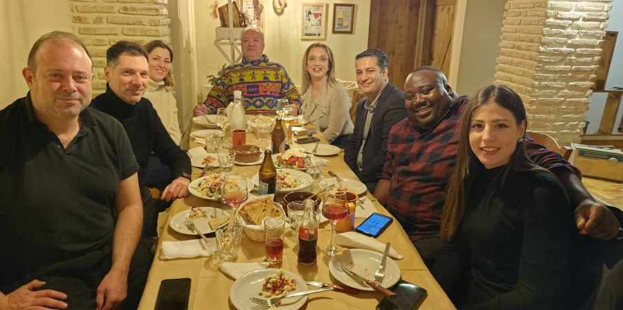 Η βραδιά συνεχίστηκε με βόλτα στους πεζόδρομους της πόλης από τους οποίους ενθουσιάστηκαν πραγματικά και ολοκληρώθηκε με γεύμα, παρουσία και του Δημάρχου Αγρινίου Γ. Παπαναστασίου, σε κεντρικό μαγαζί της πόλης και συγκεκριμένα στην πλατεία Παναγόπουλου, μετά από πρόταση της προέδρου του Πολιτιστικού Συλλόγου “Παραδοσιακό Καλλιτεχνικό Εργαστήρι” Ειρήνης Τσέλιου.