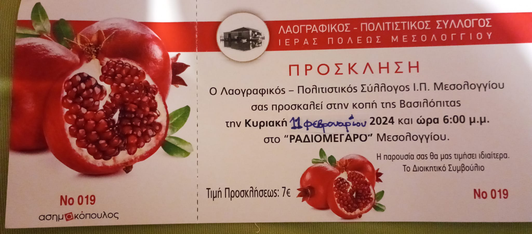 Τιμή πρόσκλησης 7€.