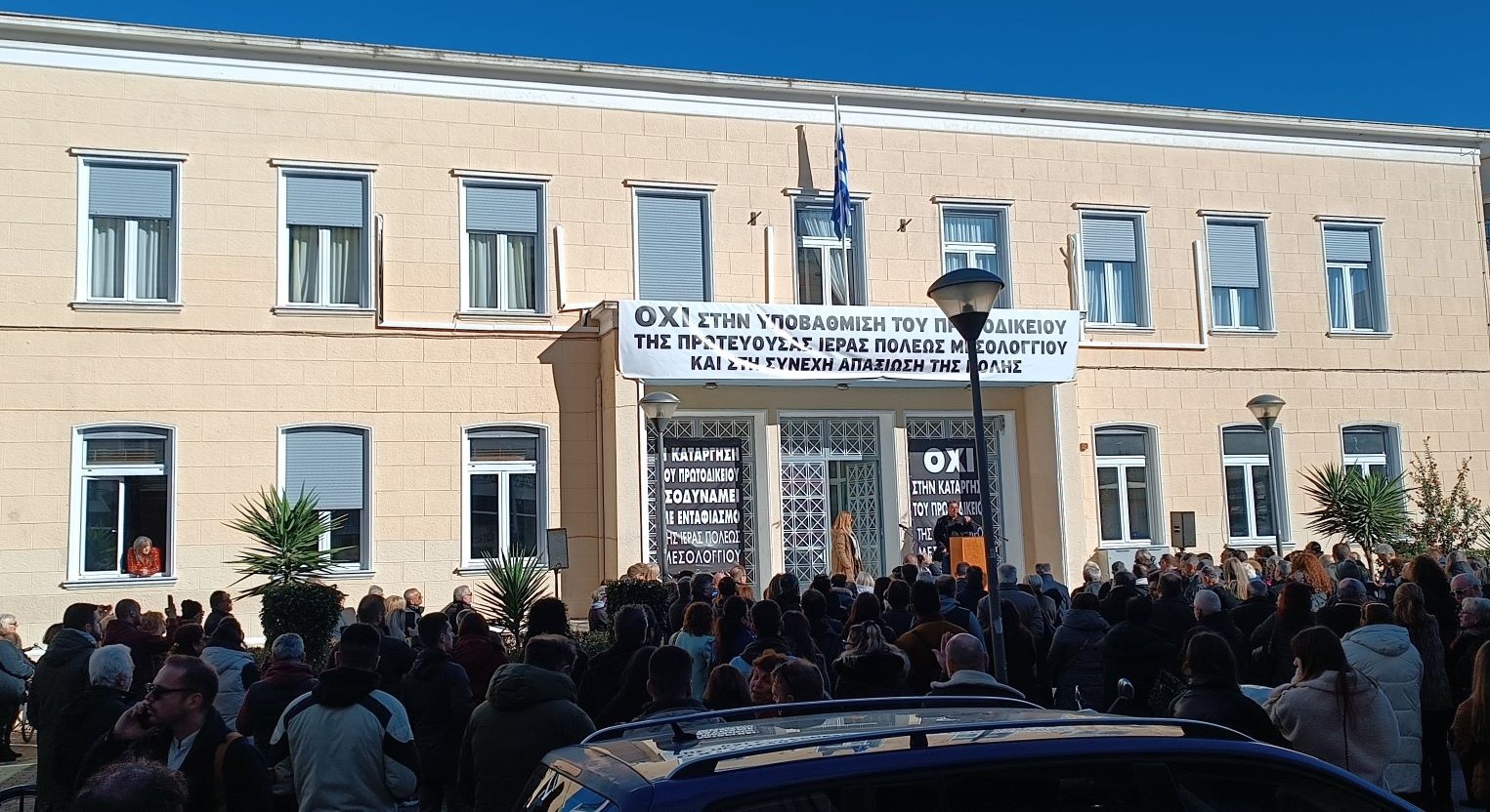 Σύσσωμο το Διοικητικό Συμβούλιο του Εμποροβιομηχανικού Συλλόγου Μεσολογγίου παρέστη στην πανδημοτική κινητοποίηση έξω από το Δικαστικό Μέγαρο το πρωί της Τρίτης, 23 Ιανουαρίου, κατά την οποία ολόκληρη η πόλη διατράνωσε την αποφασιστικότητά της να αγωνιστεί με κάθε μέσο, προκειμένου το Πρωτοδικείο να παραμείνει στην πρωτεύουσα του νομού Αιτωλοακαρνανίας, την Ιερή Πόλη του Μεσολογγίου.