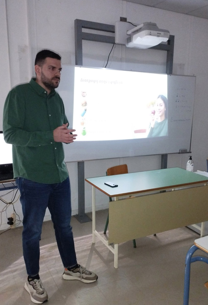 Στις 6-2-2024 και στα πλαίσια του μαθήματος «Εργαστήρια Δεξιοτήτων» της Α’ Γυμνασίου με διδάσκουσα την εκπαιδευτικό κ. Ευδοκία Παπανικολάου, επισκέφτηκε το σχολείο μας ο διατροφολόγος-διαιτολόγος κ. Σαλωνίτης Κωνσταντίνος.