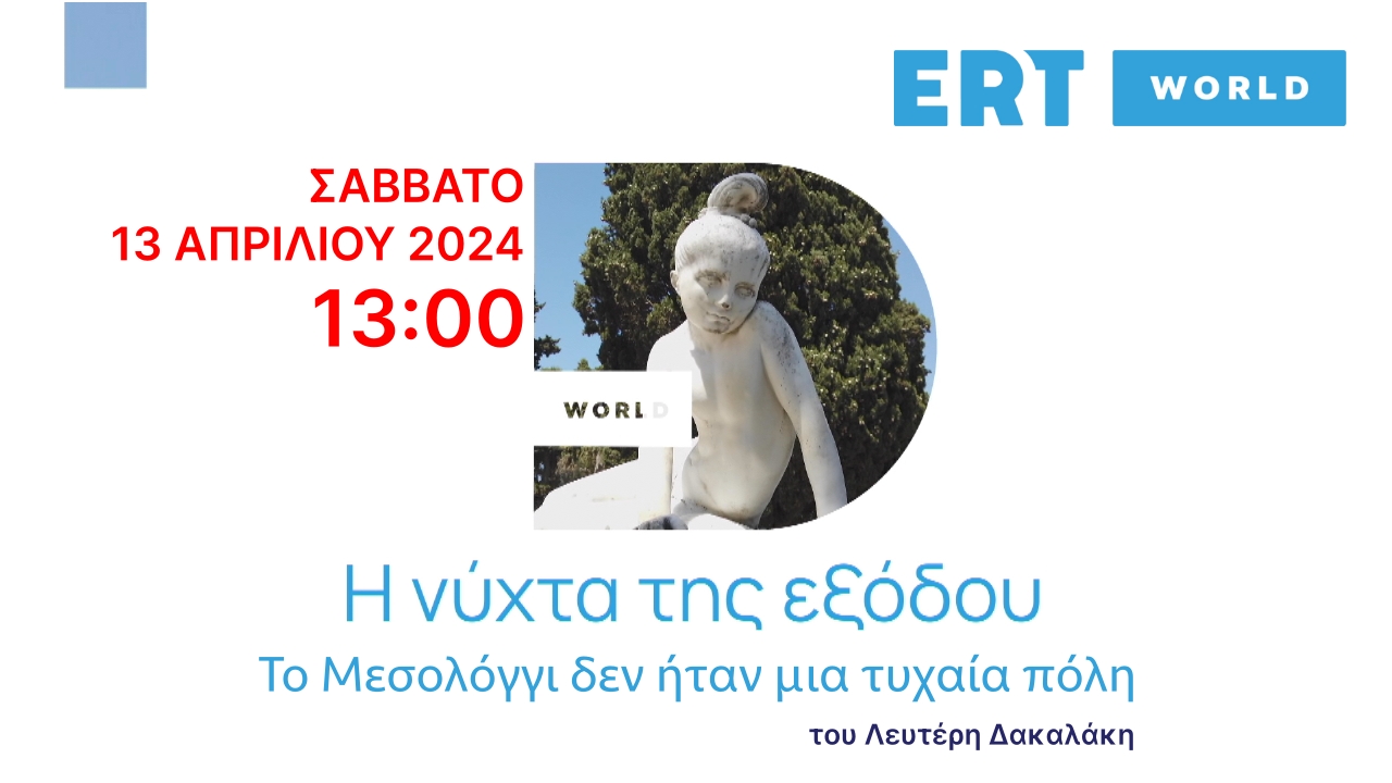 Με την προβολή του ντοκιμαντέρ "Η Νύχτα της Εξόδου - το Μεσολόγγι δεν ήταν μια τυχαία πόλη" του Μεσολογγίτη σκηνοθέτη, Λευτέρη Δακαλάκη, η δημόσια τηλεόραση ΕΡΤ World τιμά αύριο, Σάββατο, 13 Απριλίου 2024 την έναρξη των εφετεινών Εορτών Εξόδου.