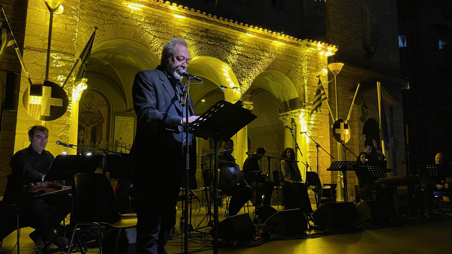 Το εξαιρετικό καλλιτεχνικό σύνολο που πραγματοποίησε την παράσταση «Αλωνάκι της Λευτεριάς», προκάλεσε την έντονη συγκίνηση του κοινού που παρακολούθησε με αδιάσπαστη προσοχή, παρά το έντονο κρύο, τους ερμηνευτές της παράστασης μουσικής και λόγου χθες Δευτέρα, 22 Απριλίου 2023, στον αύλειο χώρο του Μητροπολιτικού Ιερού Ναού Αγίου Σπυρίδωνος, στην Ιερή Πόλη Μεσολογγίου.