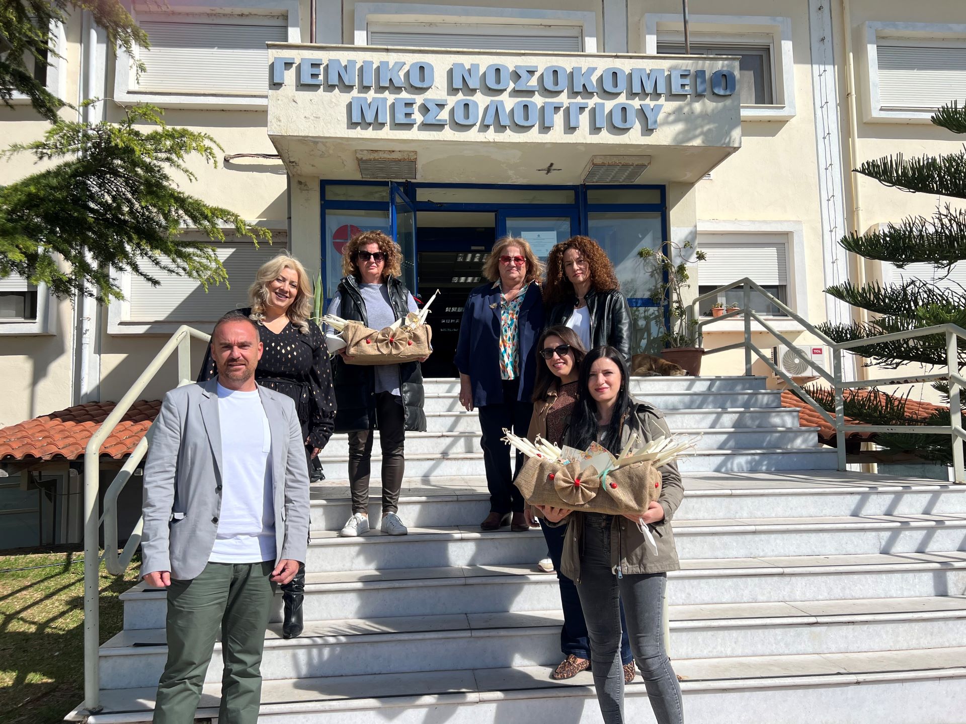 Ο Αντιδήμαρχος Κοινωνικής Προστασίας του Δήμου Ιερής Πόλης Μεσολογγίου κ. Γιάννης Κουτσοθεόδωρος, συνοδευόμενος από την Πρόεδρο του Δημοτικού Συμβουλίου κα. Ζιζή Φούντα, την Προϊσταμένη του Αυτοτελούς Τμήματος Κοινωνικής Προστασίας κα Ζαΐμη Ευστρατία και τα στελέχη των κοινωνικών δομών (Κοινωνικό Παντοπωλείο και Κέντρο Κοινότητας) στις 26/4/2024 ημέρα Παρασκευή και ώρα 10:00 π.μ., επισκέφθηκαν εν όψει των εορτών του Πάσχα τους νοσηλευόμενους του Γενικού Νοσοκομείου Μεσολογγίου «Χατζηκώστα».