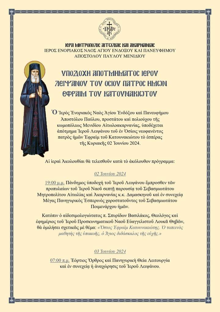 Υποδοχή Ιερού Λειψάνου Αγίου Εφραίμ Κατουνακιώτου