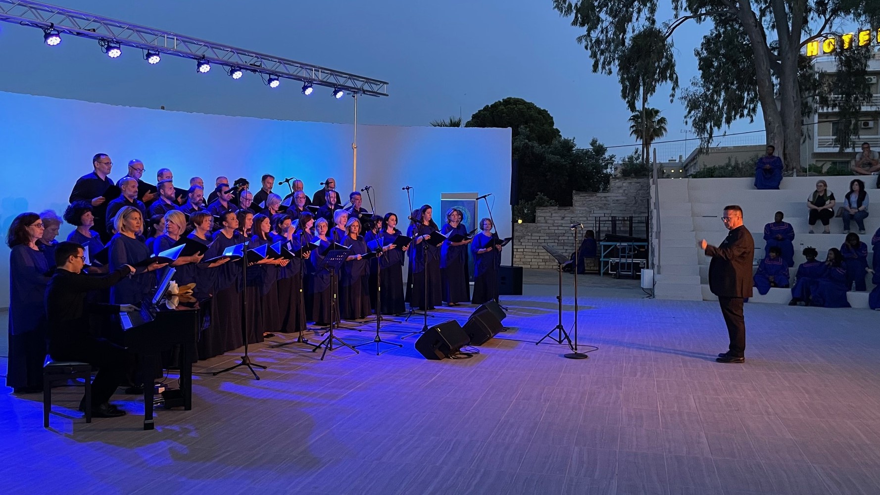 Η Δημοτική Χορωδία της πόλης μας, υπό τη διεύθυνση του Καλλιτεχνικού Διευθυντή της κου Σπύρου Χολέβα, έδωσε το μουσικό έναυσμα αποδίδοντας γνωστά και αγαπημένα μουσικά κομμάτια. Στη συνέχεια, ακολούθησε το παγκοσμίου φήμης χορωδιακό σύνολο του Morgan State University, υπό τη διεύθυνση του Eric Conway, Πρόεδρο του Τμήματος Καλών και Παραστατικών Τεχνών του αμερικανικού πανεπιστημίου. Με επιλογές που κυμαίνονταν από Gospel, Spirituals έως και σύγχρονα τραγούδια, τα 28 μέλη της χορωδίας πραγματικά συνεπήραν το κοινό που συμμετείχε με ενθουσιασμό, χτυπώντας ρυθμικά τα χέρια και τραγουδώντας.