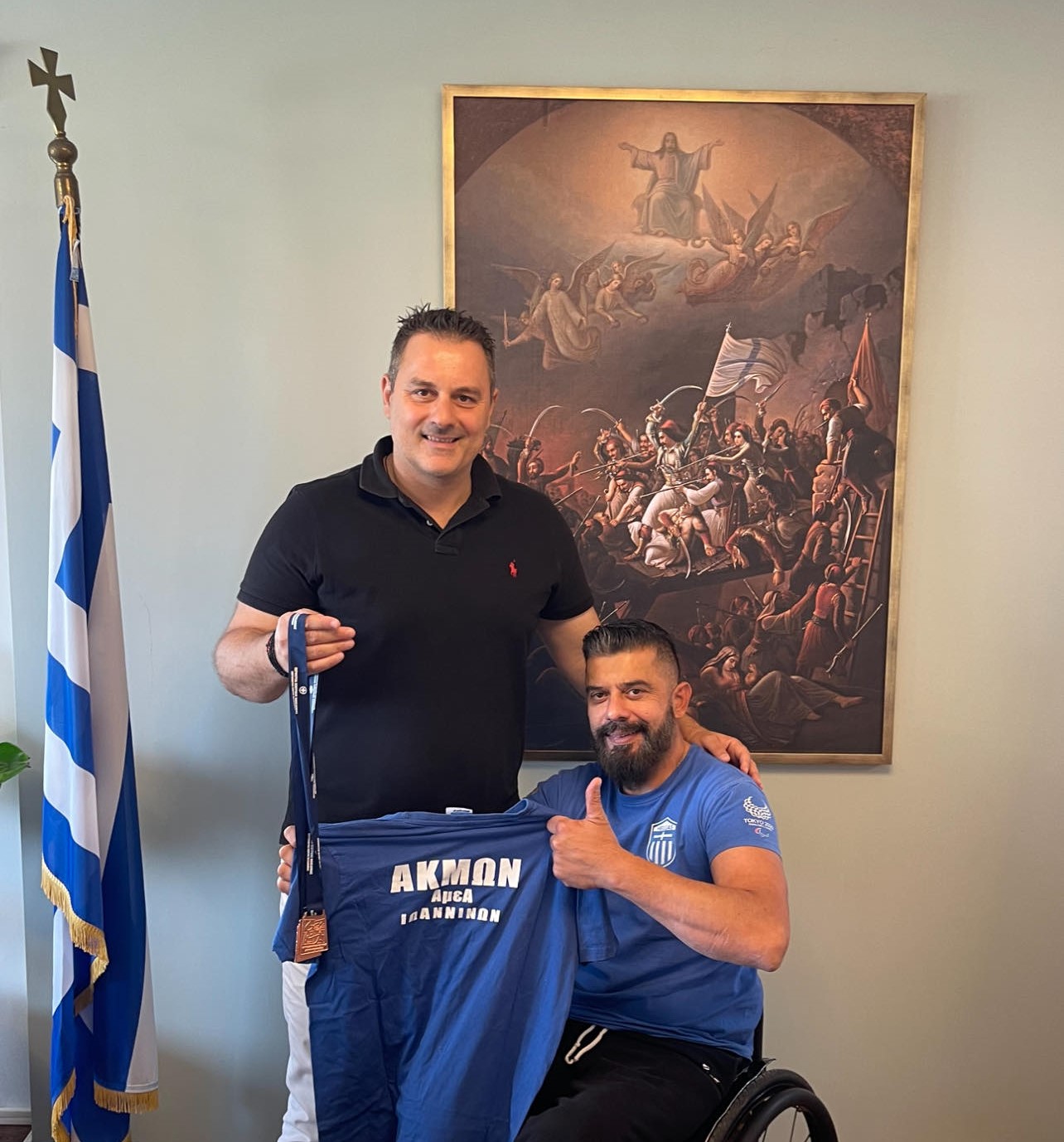 Τον πρωταθλητή άρσης βαρών σε πάγκο ΑμεΑ Σπύρο Λαχανά υποδέχθηκε ο Δήμαρχος Ιερής Πόλης Μεσολογγίου Σπύρος Διαμαντόπουλος στο γραφείο του στο Δημαρχείο σήμερα Δευτέρα, 10 Ιουνίου 2024.