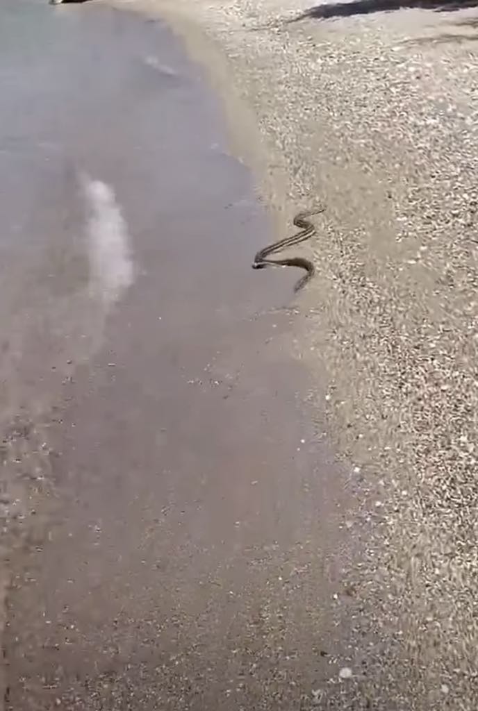 Έναν απρόσμενο επισκέπτη συνάντησαν οι λουόμενοι σε παραλία της Ναυπάκτου.