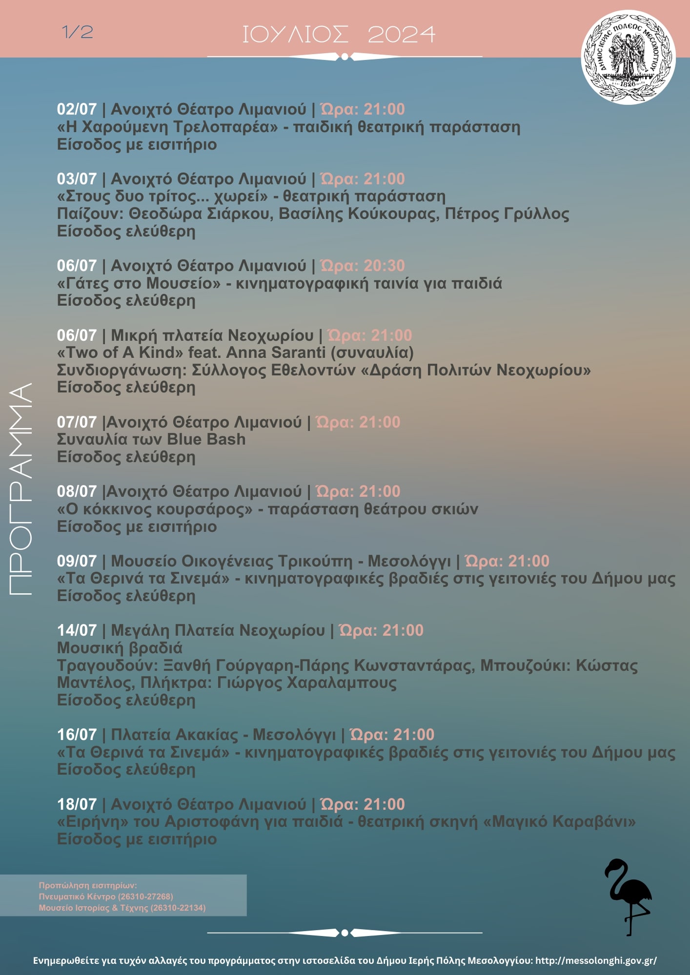 Ανανεωμένο Πρόγραμμα Πολιτιστικού Καλοκαιριού 2024 Δήμου Ιερής Πόλης Μεσολογγίου