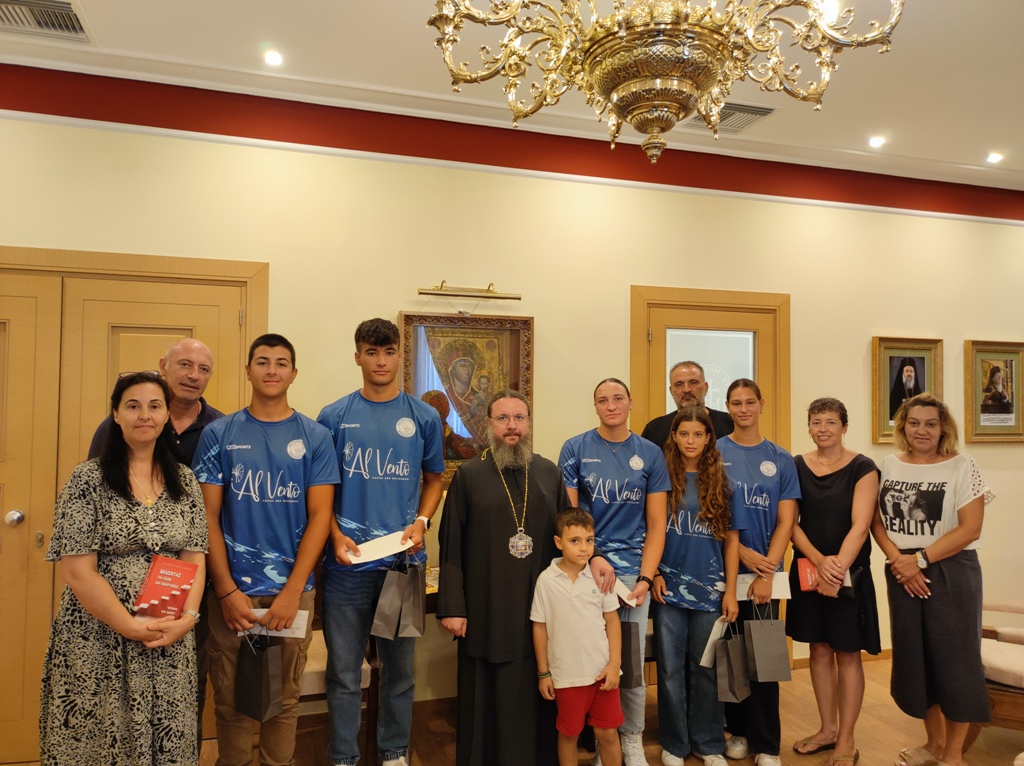 Με τους αθλητές της ομάδας ΚΑΝΟΕ – ΚΑΓΙΑΚ του Ναυτικού Ομίλου Μεσολογγίου που θα συμμετάσχουν στους αγώνες των Olympic Hopes στο Szeged της Ουγγαρίας από 19 έως 22 Σεπτεμβρίου 2024, συναντήθηκε ο Σεβασμιώτατος Μητροπολίτης Αιτωλίας και Ακαρνανίας κ. Δαμασκηνός, την Πέμπτη 22 Αυγούστου 2024, στα Γραφεία της Ιεράς Μητροπόλεως στην Ιερά Πόλη Μεσολογγίου.