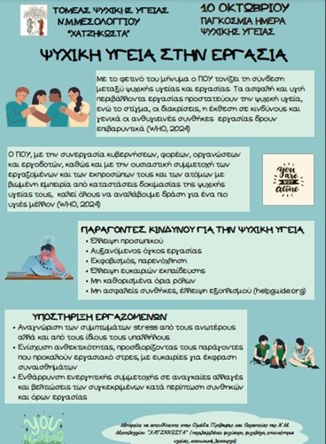 Στις 10 Οκτωβρίου εορτάζεται η Παγκόσμια Ημέρα Ψυχικής Υγείας, μια ημέρα αφιερωμένη στην ευαισθητοποίηση γύρω από θέματα ψυχικής υγείας και την προώθηση της στήριξης αυτών που πλήττονται.