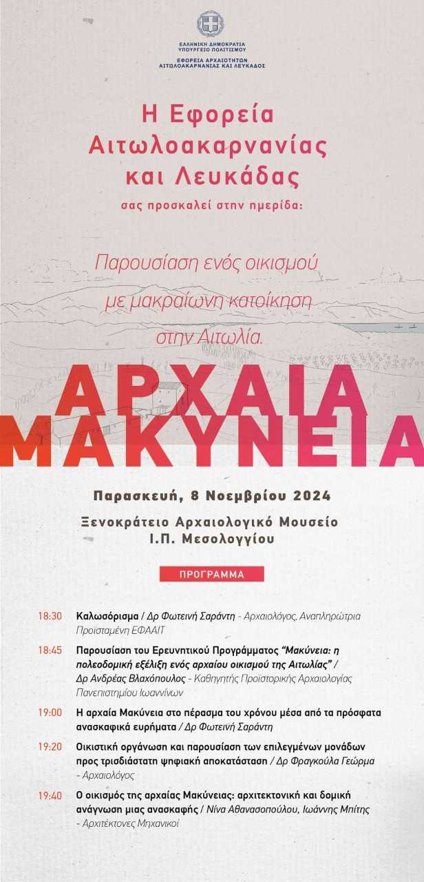 Το Ερευνητικό Πρόγραμμα υλοποιήθηκε στο πλαίσιο του Επιχειρησιακού Προγράμματος «Ανάπτυξη Ανθρώπινου Δυναμικού, Εκπαίδευση και Δια Βίου Μάθηση» του ΕΣΠΑ 2014-2020. Αφορούσε στη μελέτη των αρχιτεκτονικών καταλοίπων και της πολεοδομικής εξέλιξης του οικισμού της αρχαίας Μακύνειας, τα οποία αποκαλύφθηκαν με αφορμή την κατασκευή του αυτοκινητόδρομου της Ιόνιας Οδού και ερευνήθηκαν μεταξύ των ετών 2009-2013. Στο πλαίσιο της υλοποίησής του, εκτός άλλων έγιναν, σε συνεργασία με εξειδικευμένους αρχιτέκτονες μηχανικούς, σχεδιαστικές αναπαραστάσεις επιλεγμένων κτιρίων του οικισμού. Αυτές στη συνέχεια αξιοποιήθηκαν για την παραγωγή σύντομων βίντεο, τα οποία παρέχουν ζωντανή την εικόνα τμημάτων της αρχαίας πόλης και καθιστούν κατανοητά, ακόμη και από μη ειδικούς, τα ιδιαίτερα χαρακτηριστικά του.