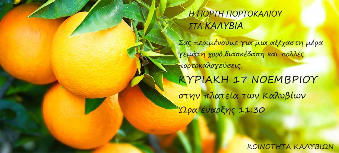 Ο Δήμος Αγρινίου  και η Κοινότητα Καλυβίων σας προσκαλούν να συμμετάσχετε στην  4η Γιορτή Πορτοκαλιού που θα πραγματοποιηθεί  την Κυριακή 17 Νοεμβρίου 2024.