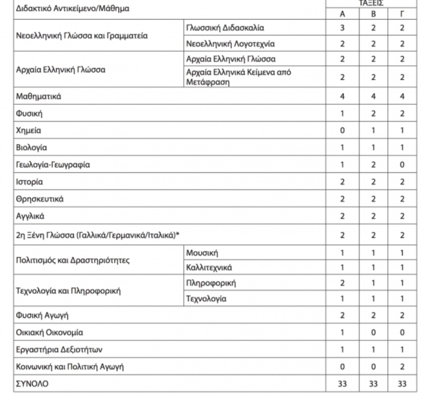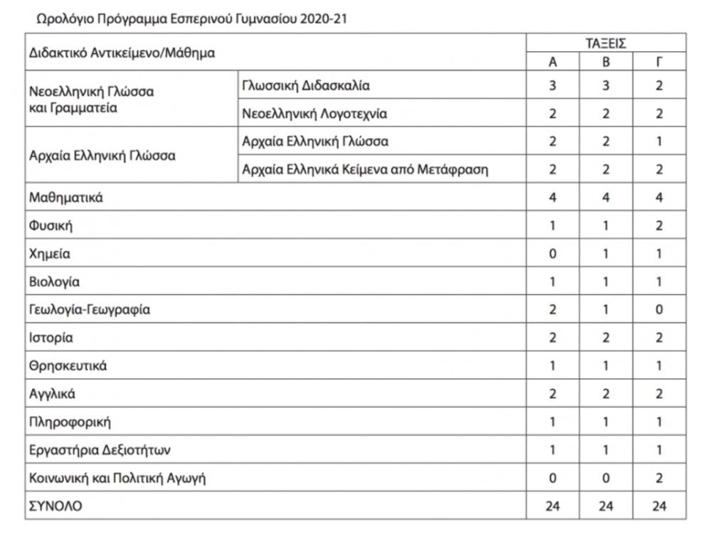 Ωρολόγιο Πρόγραμμα Ημερήσιου Γυμνασίου 2020-21