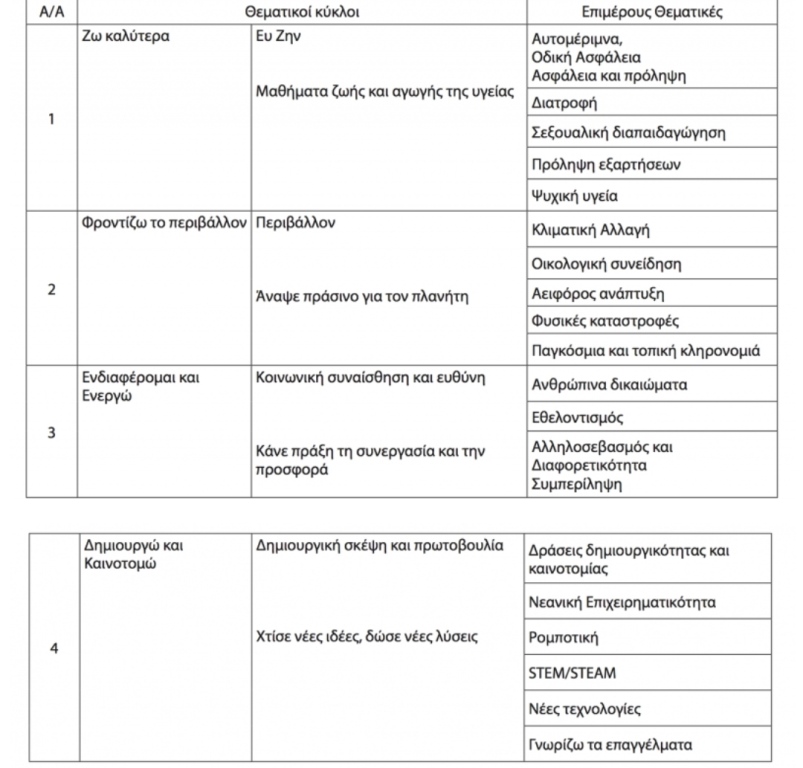 Κατά την υλοποίηση της πιλοτικής δράσης καλλιεργούνται οι παρακάτω κύκλοι δεξιοτήτων: